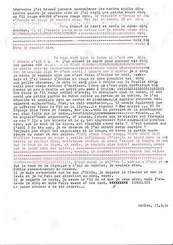 Texte dactylographié et fils de ruban encreur, 2010